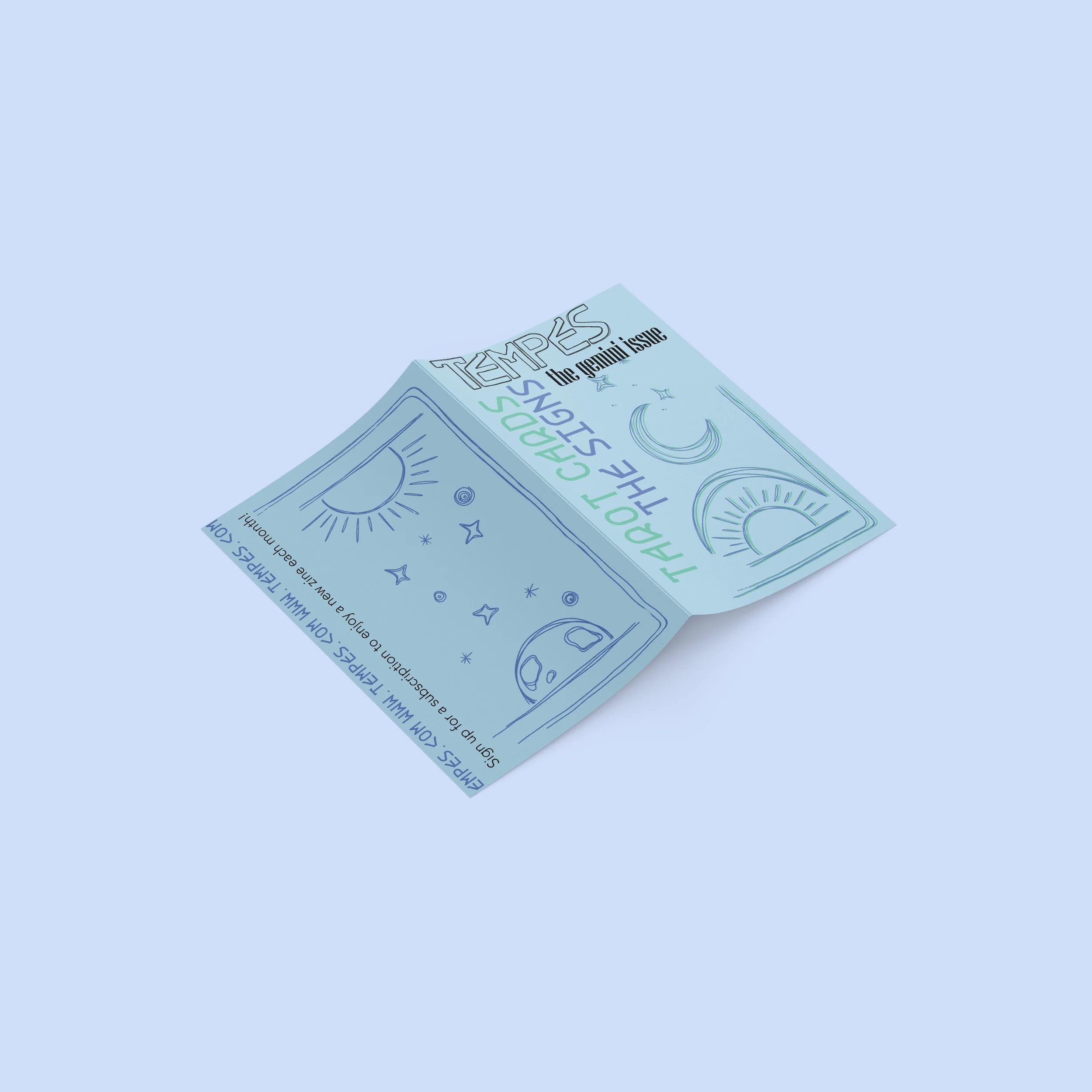 TEMPES is a fictional monthly zine subscription. Each month a new issue would be released and sent out to subscribers. These zines aim to be a source of not only information but entertainment for the people who already love or thrive to learn more about astrology and zodiac signs. Each zine has its own over arching theme having to do with zodiac signs, while also relating to and being inspired by that months specific sign, if the zine drops in May it would largely be inspired by what it means to be a Gemini sign.